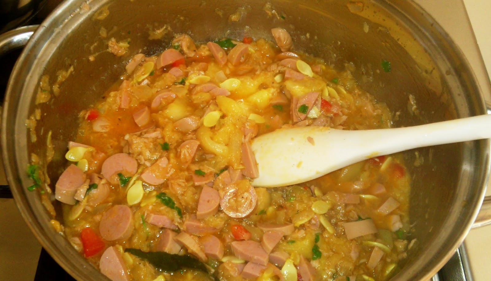 - 1 lata de salsichas cortadas em rodelas (mas também pode fazer com atum e cogumelos, camarão, quadradinhos de fiambre,...);